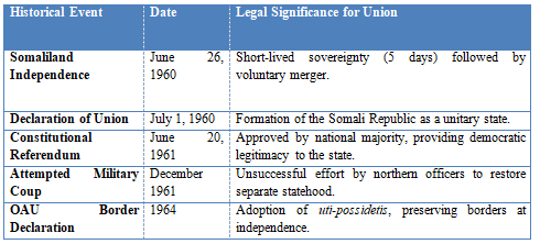 The historical narrative surrounding the 1960 union between the British Somaliland Protectorate and the Trust Territory of Somalia is a central arena in the struggle for the union. Proponents of Somaliland’s independence argue that the merger was never legally ratified, citing procedural flaws such as the failure to pass a single, unified Act of Union and a 1961 referendum in which a majority of northern voters rejected the constitution. However, from a pro-union and international legal perspective, these arguments are countered by the principle of state continuity and the long-term de facto and de jure recognition of the Somali Republic.