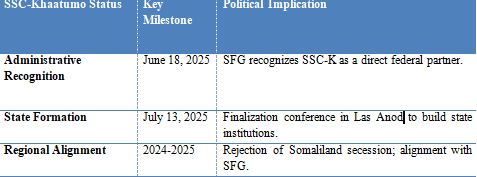 The rise of SSC-Khaatumo represents a moral and legal justification for the pro-union majority in the northern regions who reject secession. Protesters in Las Anod famously carried the blue flag of Somalia, demonstrating that the desire for national unity remains strong even in areas that have been under secessionist control for thirty years. The federal government’s recognition of SSC-Khaatumo in June 2025 provided a significant strategic advantage, creating a pro-union buffer zone that challenges Somaliland’s claim to territorial totality.